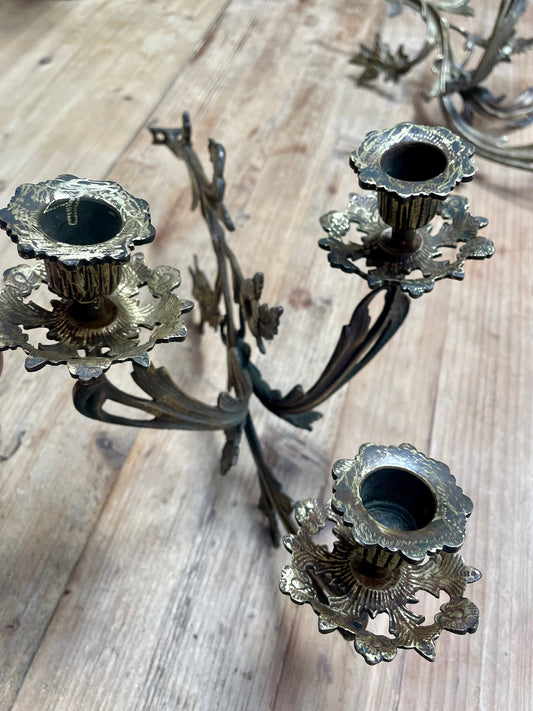 Louis XVI Style Three-Arm Brass Wall Sconces