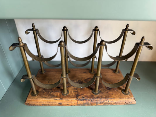 Vintage Italian Oak and Brass Wine Holder