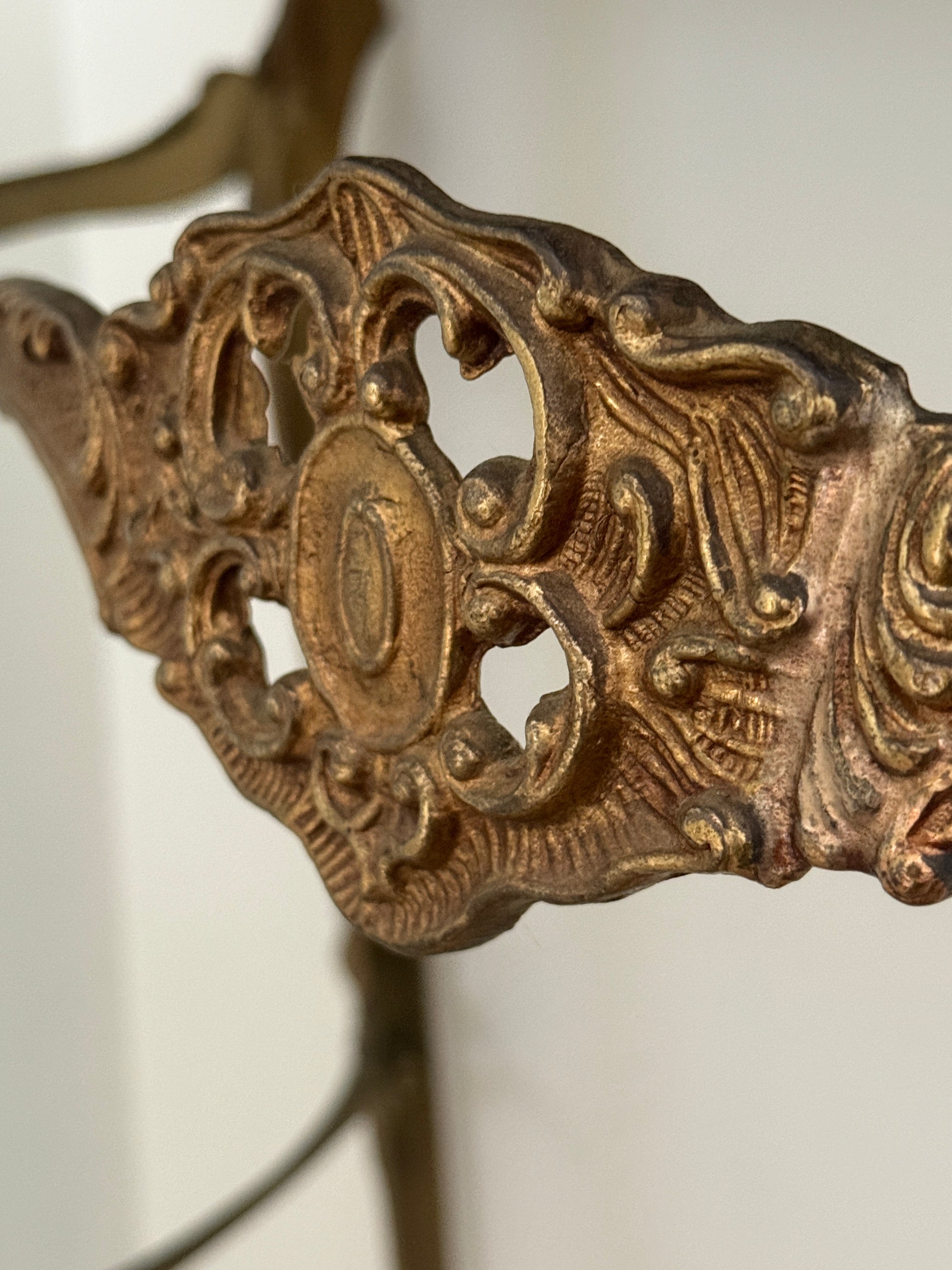 The piece exhibits characteristics of the Rococo style, known for its curves and motifs centre details in the gilt metal frame