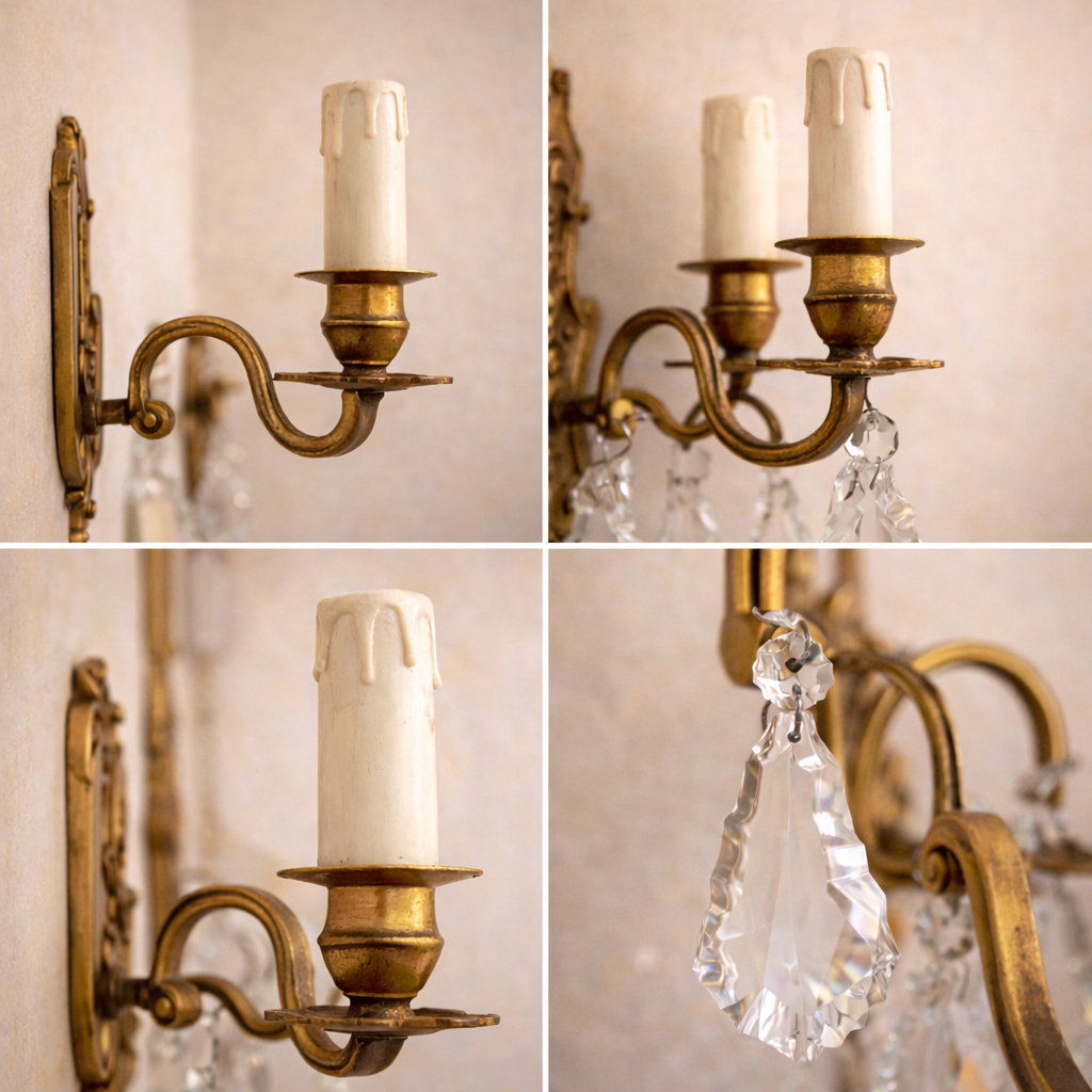 French Crystal and Brass Wall Sconce Pair
