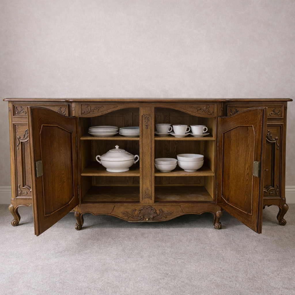 Grand Provincial French Oak Louis XV Style Buffet with Parquetry Top